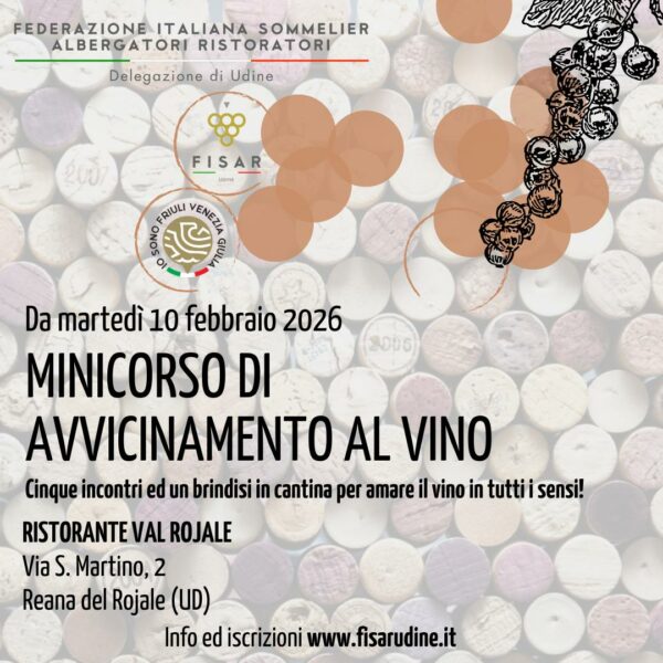 Minicorso di Avvicinamento al Vino da martedì 10 febbraio dalle ore 20:00 presso il RISTORANTE VAL ROJALE in via San Martino 2 a Reana del Rojale (UD).